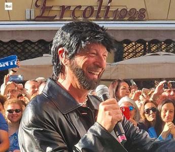 (Adnkronos) – Grandi ospiti per l’ultima puntata di Viva Rai 2. Nel box con i conduttori Rosario Fiorello e Fabrizio Biggio c’è Gabriele Muccino raggiunto poi da Amadeus vestito con parrucca e barba nere, uno spolverino nero e una maglia argentata ad imitare il cantante Marco Mengoni. Si esibisce davanti ad una folla gremita in via Asiago 10 nella canzone ‘Due vite’ con ballerine che gli ballano intorno. “Sembri un lupo mannaro a New York!”, esclama un divertito Fiorello. “Lo zio di Mengoni”, ribatte Amadeus che si toglie lo spolverino per il caldo e mostra la “maglia della salute” bianca sotto.