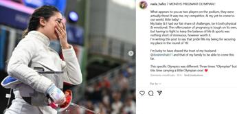 “Io e il mio bambino abbiamo avuto la nostra parte di sfide, sia fisiche che emotive. Le montagne russe della gravidanza sono già difficili da gestire, ma dover lottare per mantenere l’equilibrio tra vita e sport è stato davvero duro, anche se ne è valsa la pena. Scrivo questo post per dire che sono orgogliosa di aver ottenuto il mio posto agli ottavi!”, ha scritto la schermitrice sul suo account Instagram.
