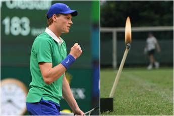 Non sicuramente un compito facile, che però Sinner svolge senza particolari problemi. La sua pallina infatti oltrepassa la rete, sfiora il fiammifero e lo accende, con l’azzurro che poi arriva dall’altra parte del campo e lo spegne con un sorriso soddisfatto.
