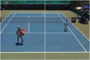 In campo fa caldo, lui vince il set e va a farsi una doccia